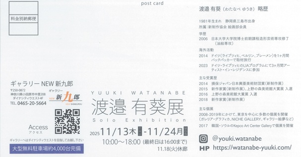 絵画専攻の渡邉 有葵非常勤講師の個展のご案内です。