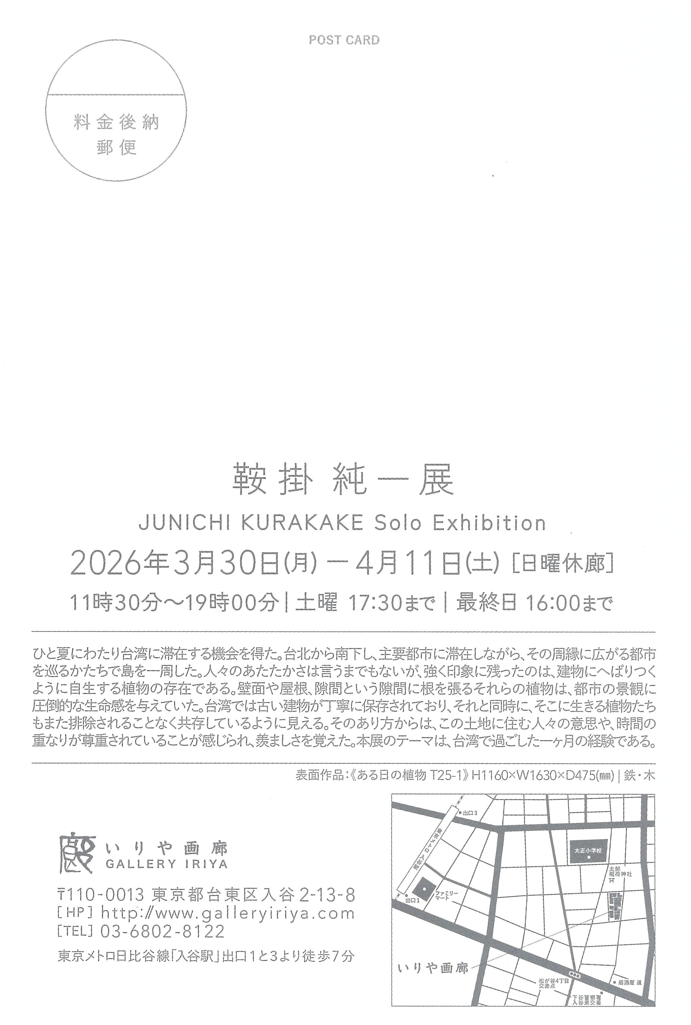 2026年3月30日(月)ー2026年4月11日(土) [日曜休廊]